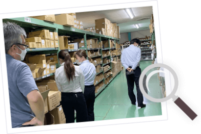 豊富な種類と在庫量を誇る倉庫では、自動車部品を実際に手に取って見ることができます。