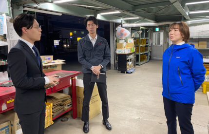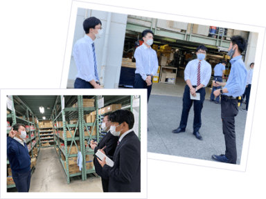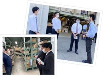 事務所および倉庫の見学と説明、先輩社員による質疑応答